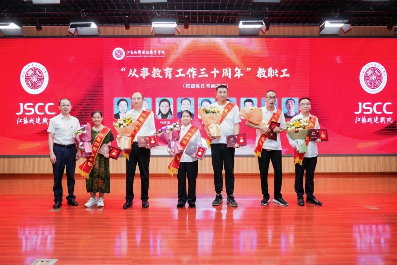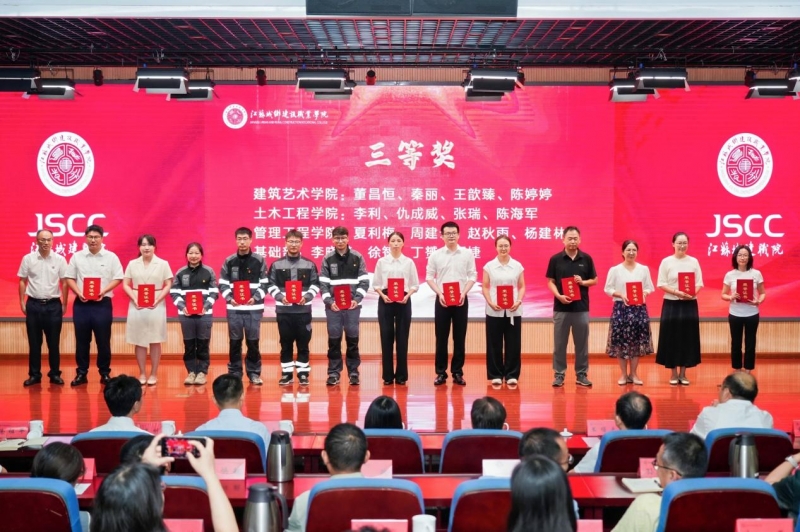 校党委委员、副校长袁建刚,副校长袁乐分别为2025年江苏省职业院校教学能力比赛中获奖的教师颁奖。